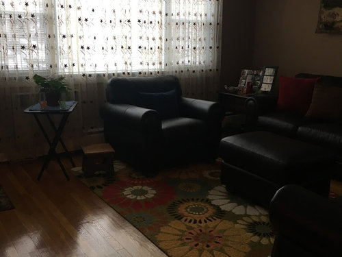 Smaller, more proportionally fitting furniture, a cooler paint color and better window treatments help bring life to a limiting layout