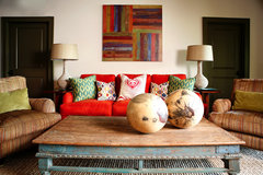 See how designers combine furniture and accessories while celebrating a fiery focal point