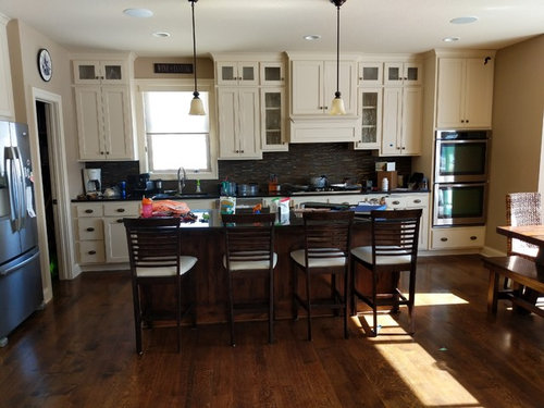 Looking for new stools and lights above island- what would look good?