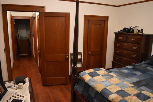 Window Treatment: We are remote, with no neighbors so we're not concerned about privacy, and we have a great, scenic view out this window. This window faces East so we will get an early wakeup call in the summer; I'm not sure yet if we will always want that. But I do love the wood work of the window trim- we are planning to replace the windows themselves this year so hopefully no more plastic and insulation next winter.