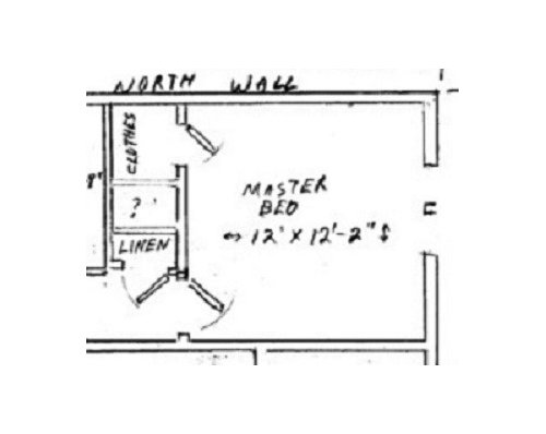 The bedroom is about 12'x12', but we are restricted on layout due to doors, windows, and baseboard registers. Layout below.