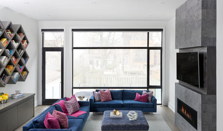 LIVING ROOMSRoom of the Day: Colorful Family Room With a Statement Fireplace
