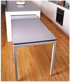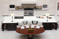 Avoid a too-sterile look and establish a focal point with a contrasting island hue