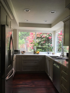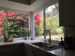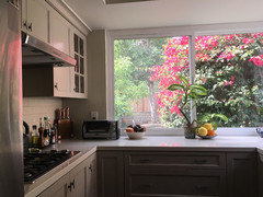 april, your kitchen is my favorite. The large windows on two sides with the bougainvillea peeking in on a very tidy and functional kitchen that looks fairly new just make this so special.