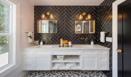 These floating vanities, repurposed dressers and open shelves offer creative and useful design solutions