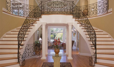 Often a platform for a newel post, a curved curtail decorates the side of a staircase