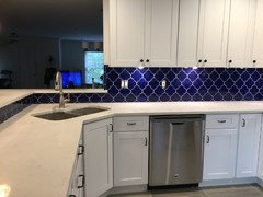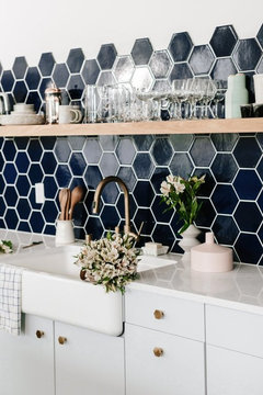 KITCHEN BACKSPLASHESThis Kitchen’s Geometric Blue Tile Steals the Show