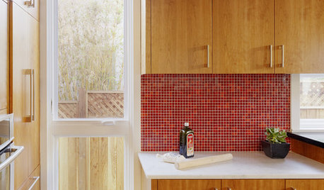 Bring some zing to your kitchen with a backsplash of ruby-colored tiles or back-painted glass
