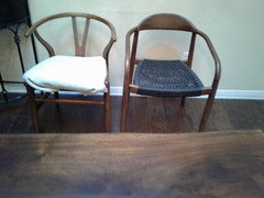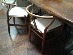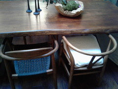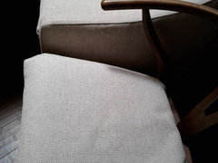 Love the contrast color of wood and style, but dislike the fabric, and don't like the ones that have the rush seat.