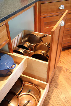 Keep cookware neat and at the ready with racks, drawers and creative storage solutions
