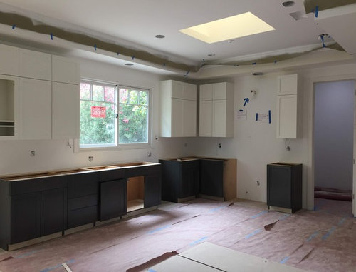 An Asian-inspired island, newly stained floors and white cabinets complete the look