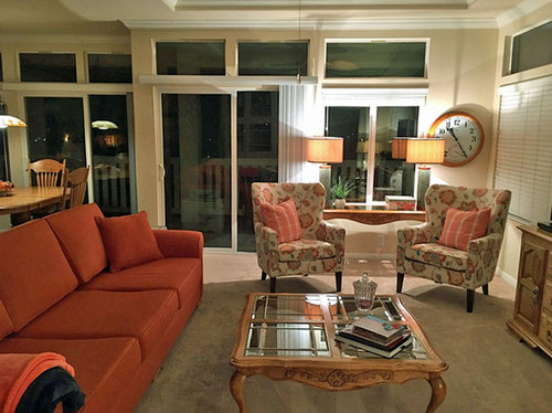 RETIREMENT HOME: 80s Golden Oak, No Wall Space, Large T.V. -- HELP!