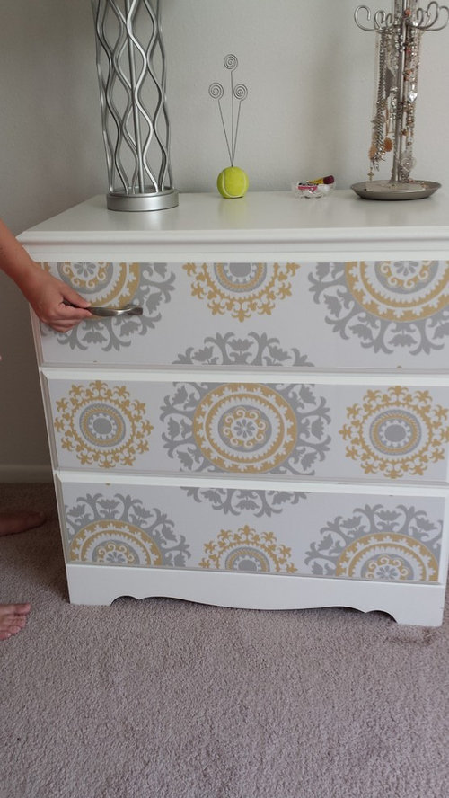 Update on removable wallpaper on dresser - project progress picture