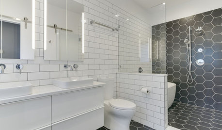 BATHROOM MAKEOVERSBathroom of the Week: High-Contrast Tile and a New Layout