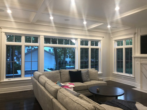 Transitional Family Room Window Treatments