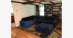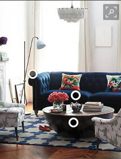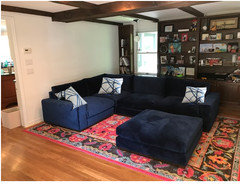 Area rug advise for blue velvet sectional