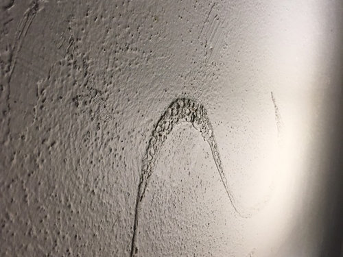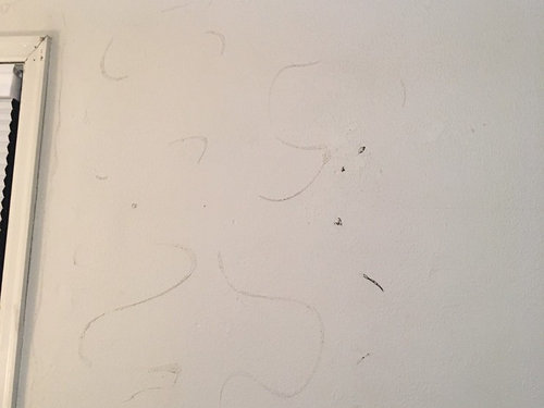 Best way to cover/disguise painted-over adhesive squiggles on walls?