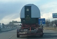 Dawn, the object in the photo is a sheep wagon. Someone is hauling it somewhere! I got a kick out of it