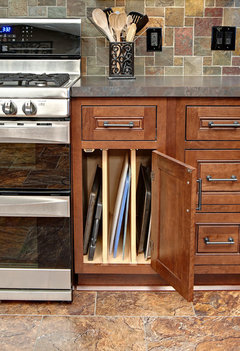 Dividers, rollouts and corner systems can help corral containers and lids and maximize kitchen cabinet space