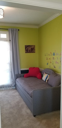 Artfully distressed pieces and elegant colors take a formerly child-focused space into sophisticated territory