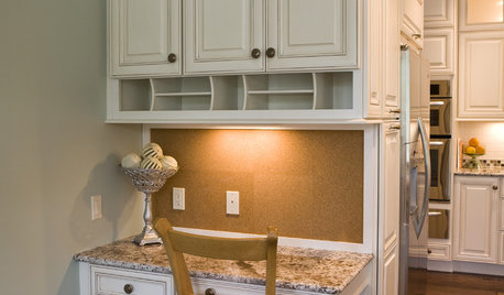 Stick 'em up! Line cabinet fronts, backsplashes and other slivers of space with cork to create a handy surface for pinning and posting