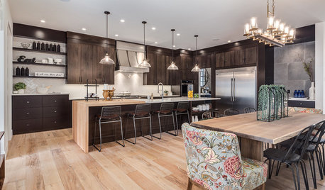 KITCHEN ISLANDSA Kitchen Mixes Dark and Light for a Contemporary, Homey Feel