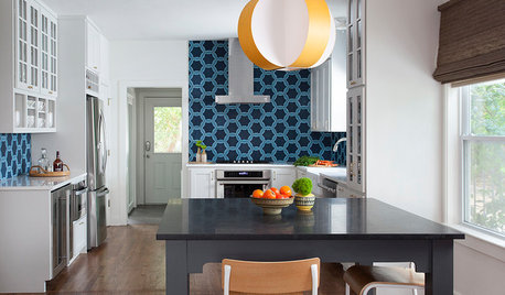 KITCHEN DESIGNKitchen of the Week: Geometric Tile Wall in a White Kitchen