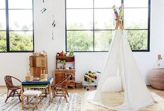 Artfully distressed pieces and elegant colors take a formerly child-focused space into sophisticated territory