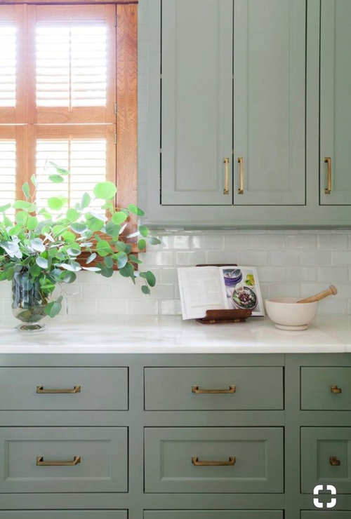 See how these 9 countertop, hardware, backsplash and flooring combinations work with green cabinets