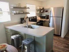 A couple go big and bold with their favorite Kelly green in their Minnesota lake-home kitchen