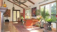 Outdoor elements like trellises, antique tools, slate and garden gates have a special place indoors