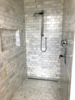 BATHROOM MAKEOVERSMarble Tile Brings Spa-Like Luxury to a Master Bath