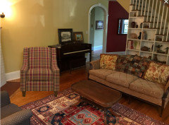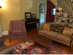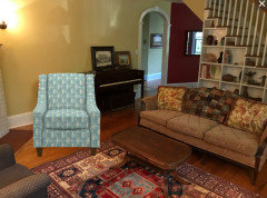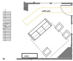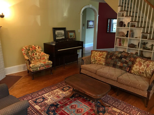 Smaller, more proportionally fitting furniture, a cooler paint color and better window treatments help bring life to a limiting layout
