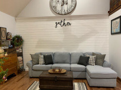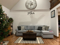 How can I make my couch look less blue, more grey.
