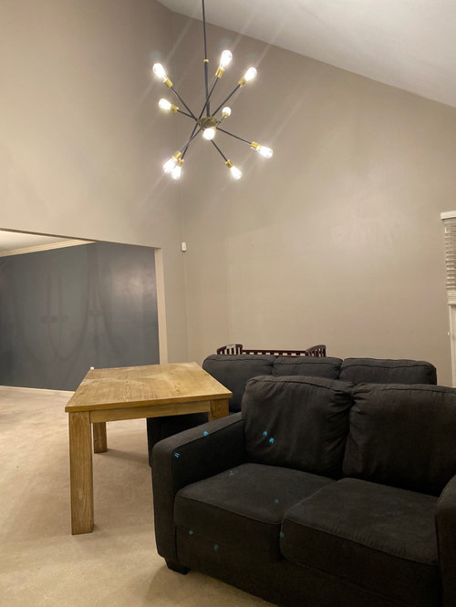 Smaller, more proportionally fitting furniture, a cooler paint color and better window treatments help bring life to a limiting layout