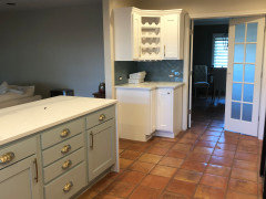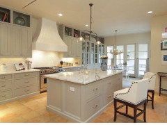 See how you can update a kitchen with new countertops, light fixtures, paint and hardware