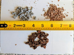 Original Author5 years agolast modified: 5 years agoSpecific to gritty, I got my hands on some 1/8" hardware cloth, took half a cup of the cheap washed sand I picked up yesterday and washed this morning: all passed through 1/4" cloth, and maybe about 60% through the 1/8". Very small amount through the kitchen strainer. Here's a photo of the screen parts together with Turface. I think it'll work. Again, I'm doing this because I can't find chicken grit or its alternatives reasonably priced anywhere.