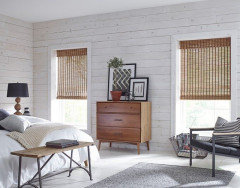 (2) Brown woven wood shades: coordinating with the browns on floors, FR sofa, kitchen cabinets.