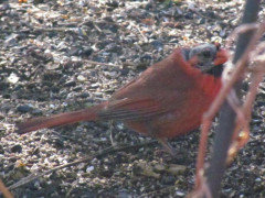 Brilliant crimson feathers make these friends stand out in a crowd