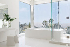 Use patterned black-and-white tile on floors and walls to bridge the gap between traditional and modern looks