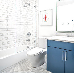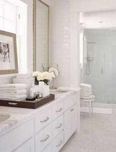 Classic, affordable and widely available, this tile combination can veer modern, traditional or eclectic on a bathroom floor