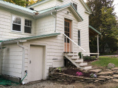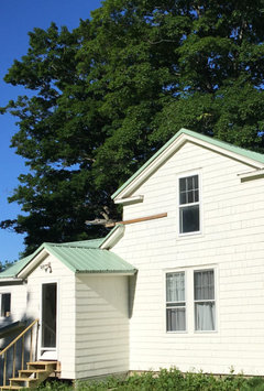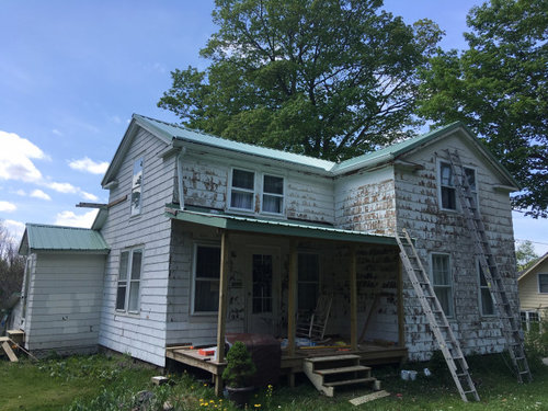Updated! Exterior white for farmhouse with patina green roof-- HELP!