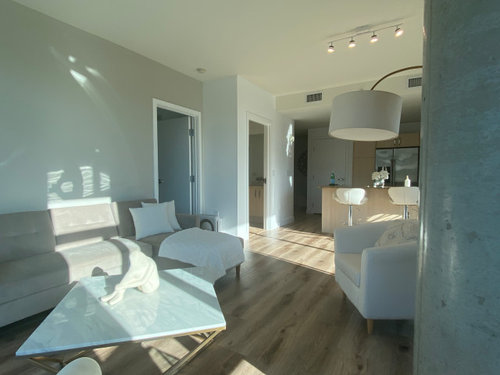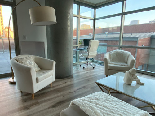 Using photos, video and email, San Francisco designer Jacqueline Palmer created a stylish living room for a New York City entrepreneur