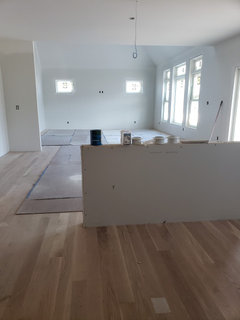Original Author5 years agolast modified: 5 years ago@Bongo. The wood is from Cochran’s Lumber in Berryville, VA. The floors are being installed and finished by Brazilian Floors (they have several locations in the D.C. metro area). I don’t recall the price of the lumber / the price our builder charged us (he ordered it on his account). It may not be the same price you would get if you buy it yourself from Cochran’s. Cochran’s offers this wood in different thicknesses and grades which also impacts the price. We got “select” — I think it’s 3/4“ thick and 7” wide. They just came out with the same wood that’s 1/8 inch thinner as an option. It may come in other thicknesses too. Be warned... the wood and multiple coats of Bona products really add up $$$$. Our floors were recently finished — I haven’t seen them yet. There was a warning on the front door telling everyone to stay out. We peeked through the windows and the floors are covered with brown paper. When I get to see them, I’ll post pics. If you are in the area, you may want to visit Cochran’s showroom. We learned a lot from seeing the color and pattern differences between the American white oak and Norwegian white oak (and white oak from other areas). I had no idea that “white oak” looks different when grown in one geographical area versus another. The people there were very patient with us and very helpful. They do their own fuming there — I found it interesting to learn about that too. We didn’t get the fumed product because we couldn’t know for sure what color the finished product would be. (We don’t know for sure what our on site finish will be either but felt we had a little more control this way.)