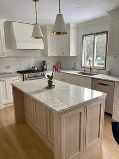 Original Author5 years ago@CEM TOSA It took me forever to decide on countertops. Get ready for a LONG story! If you search my other discussions on this site, you’ll see how I flip-flopped so many times... Corian, stainless, Neolith, D e k t o n, Quartz, wood (for the island top) and finally back to Corian. I originally wanted Corian in the kitchen with a stainless area (Near the cooktop) because they withstand abuse, can be refinished and are hygenic. I could also put hot pots on the stainless. My builder’s subs didn’t handle either material and just about everyone except @Joseph Corlett (who regularly comments on Houzz) grimaced when I mentioned Corian. My cabinets are a true white (forgot name of paint) and all of the Dekton with a “white” background was too gray. The solid white D e k t o n didn’t clean up as well as Neolithic or Corian. My sister has Neolith and loves it (clean up a breeze but she does have nicks near her sink after 1 year). I went to the Neolith east coast showroom and actually picked something out I loved but my builder’s fabricator talked me out of it. He said my sister was lucky ((so far) — he said it’s really not supposed to be used for countertops. He said mitering the edges is a nightmare (if you don’t mitre, there is a white edge because the color doesn’t go all the way through - at least the marble design I chose). The fabricator was really nice and pulled whole Quartz slabs from his warehouse into the parking lot for me to see. Originally, I had declared “never” to Quartz after reading people’s complaints about chipping and cracks. I wasn’t wild about any of the patterns. I settled on something I didn’t love and it turned out it was one of the most expensive ones. The white background wasn’t a true white but it wasn‘t bad and the marbling was pretty. MEANWHILE... earlier in the process I had contacted the main Corian wholesaler for the East Coast, and had gotten the name of a fabricator in my area. My builder said he’d work with them even though he never had before and I had several conversations with them. I had some 2” x 2” Corian samples that kept calling my name. 😁 Just about the time I had to FINALLY make a decision (about a year later than when I started due to the architect’s goof ups and COVID shut downs), the Corian fabricator sent me a couple 4x4 samples of Glacier White. It was so clean, perfect match for my cabinets, so WHITE (no yellow, gray or beige cast). Just seemed so right. My stomach-- which had been in a knot for a year due to indecision — relaxed. I knew this was IT. BTW... after the fabricator installed the countertops (and carefully covered them to protect them), other contractors uncovered them and used them as a work bench and scratched them up - a lot! ! ! The Corian fabricator came back and polished them — just like new. I hope I get into the house before any subcontractors mess them up again!