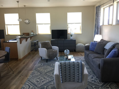 Color, Placement and Accessories Help that Big Black Screen Blend In