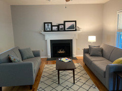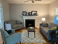 Smaller, more proportionally fitting furniture, a cooler paint color and better window treatments help bring life to a limiting layout