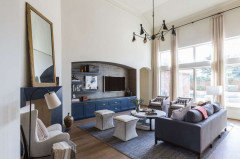 Learn how to use scale, structure and shapes to create a homey-feeling space below a grand ceiling