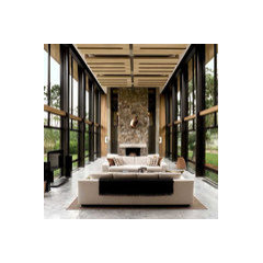 Wood & more wood, mix types.. Granite counters & iron railings. Some accent drywall with color. No popcorn ceilings. Biggest windows towards your view allowable by structure. Thar ya go. sm