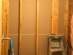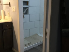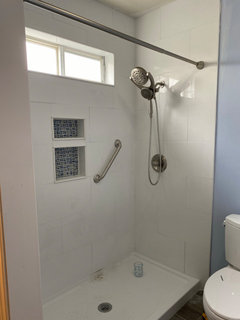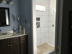 A couple in Canada remodel both rooms at once, moving a tub and installing a shower